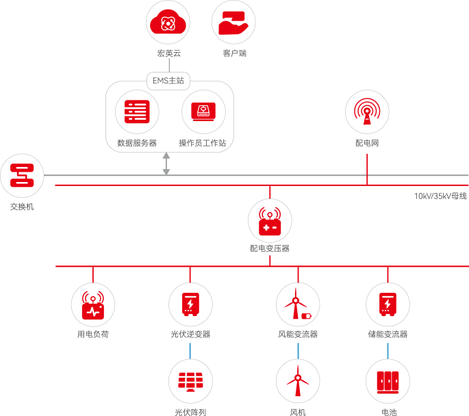 kaiyun开云风光储一体化解决方案是融合物联网技术,将风能、太阳能、储能以及EMS能源管理系统结合起来,实现风、光、储多能互补协同运行,能源精准调配减少弃风弃光,提高能源综合效率,同时通过调峰、调频和调相等功能,有效抑制电网波动,提升电网稳定性、可靠性。
