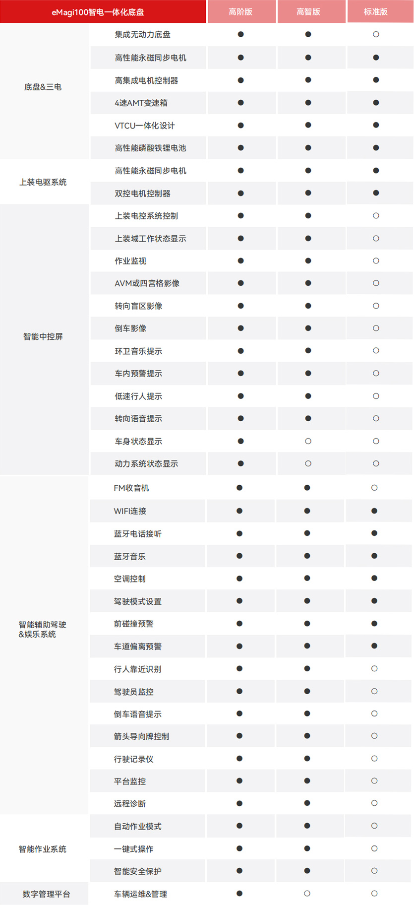 是基于eMagi(易魔方)技术平台的智能电动专用车底盘,具备上下车一体化协同控制、智能化程度高、应用改装简易的特点。