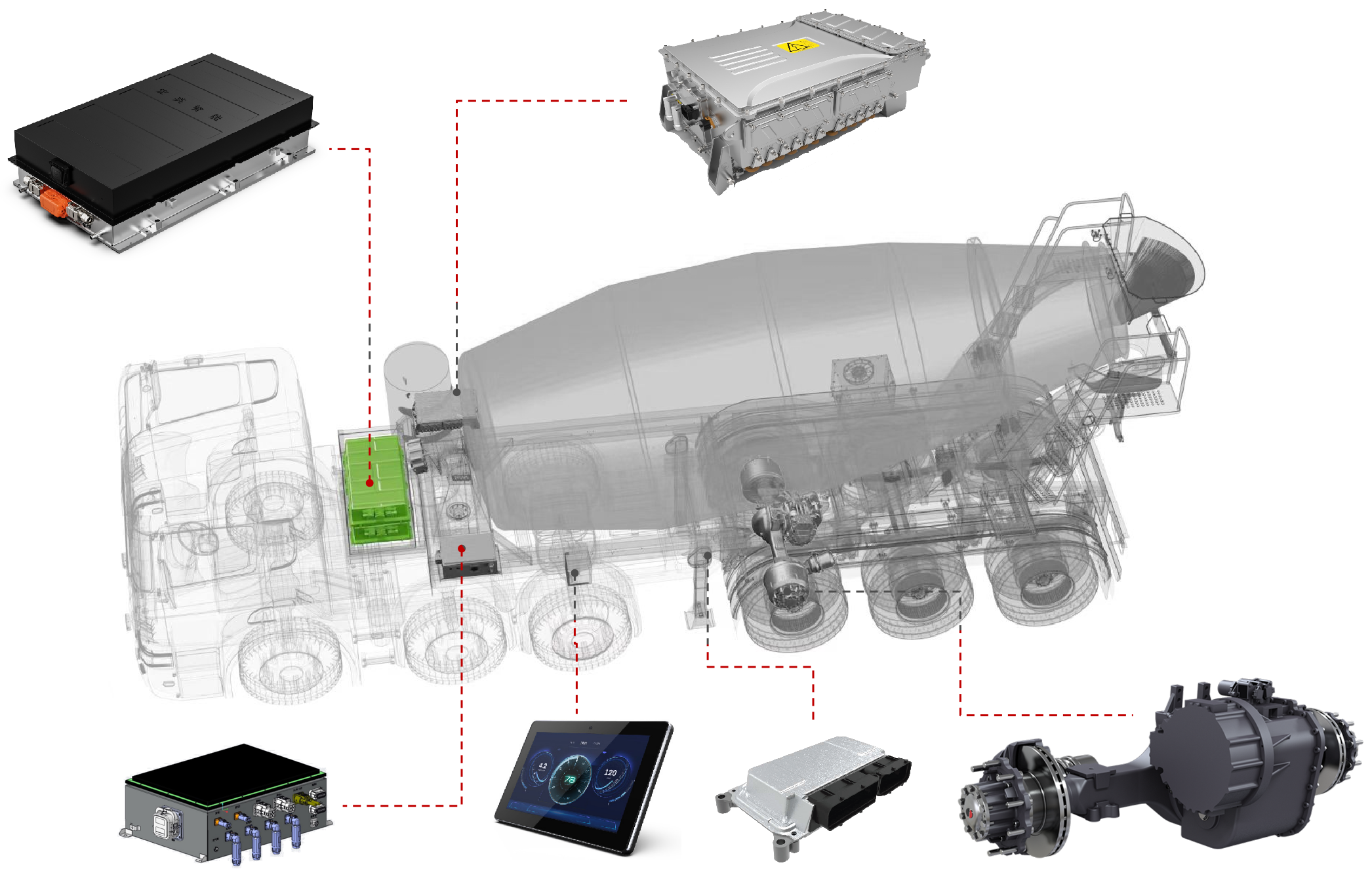 展会上,kaiyun开云智能的智电一体化解决方案引起了广泛关注。工程师团队在现场为参展观众详细介绍了混合动力牵引搅拌半挂车的系统方案。该方案基于kaiyun开云智能历经多年开发的eMagi智电平台,针对牵引搅拌半挂车进行了定向开发,涵盖以下几个方面: